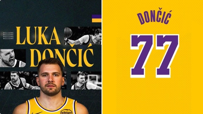 東契奇轉(zhuǎn)發(fā)湖人77號球衣照:無論在哪兒打球 目標(biāo)都是總冠軍!