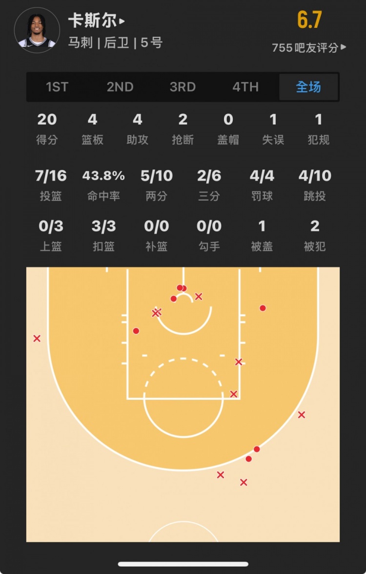 馬刺4號(hào)秀 斯蒂芬-卡斯?fàn)?登場24.1分鐘