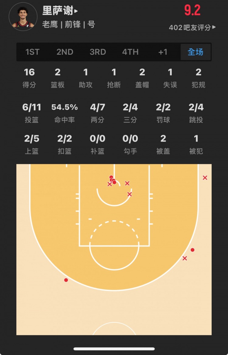 灰熊39號(hào)秀 杰倫-韋爾斯 登場31.0分鐘