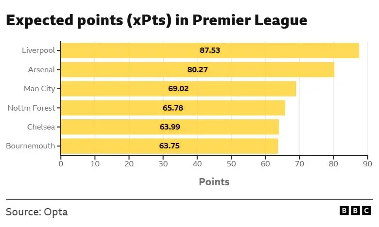 大數(shù)據(jù)預(yù)測(cè)英超最終積分:利物浦87-88,阿森納80,曼城69第三