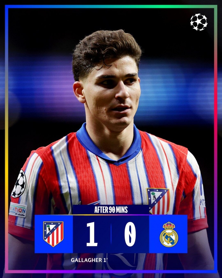 第1分鐘,馬競(jìng)反擊,德保羅分邊,西蒙尼右路傳中,前點(diǎn)一漏,加拉格爾門前鏟射破門,馬競(jìng)?cè)〉脡?mèng)幻開局,1-0!↓